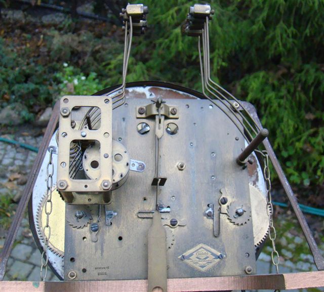 механизмы солидные, с весьма толстыми платинами, фрезерованными трибами, ходом Грахама, системой бесшумного падения гребенки, фирменная черта - храповики с собачками на задней платине, барабаны быстросъемные