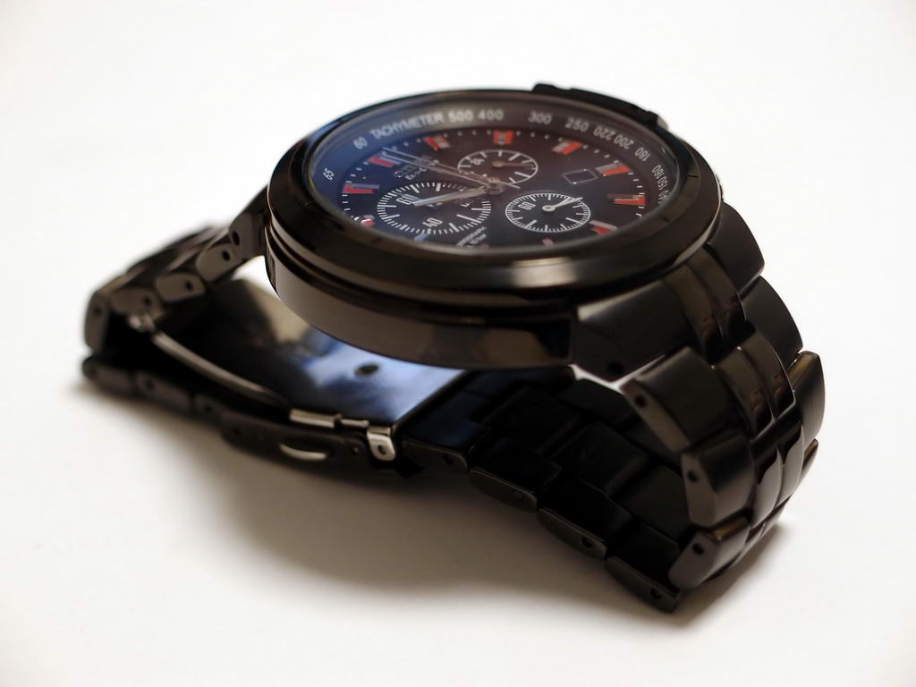 Цифер черный, но при ярком освещении просвечивает экодрайвовская сущность коричневатого оттенка, причем не ровная по краям. Читаемость средняя из-за металических стрелок (кроме секундной, она белая).