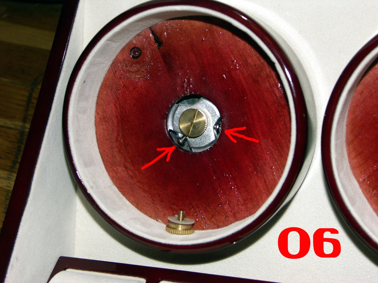 Сам барабан производит более веселое впечатление, чем аналогичная штука у MODALO. Во-первых, он деревянный, а не пластиковый. Во-вторых, алюминиевая станина крепится к нему намертво шурупами. То есть конструкция сделана по-русски, некрасиво, но насмерть. Если пихать в посадочное место одни часы, можно не бояться, что барабан перекосо…бит, и не придерживать его одной рукой. Солнце погаснет, а барабан останется. На фото 9 видны зловредные винты и царапка возле них. Таки продевали потомки Лао Цзы туда отверточку!