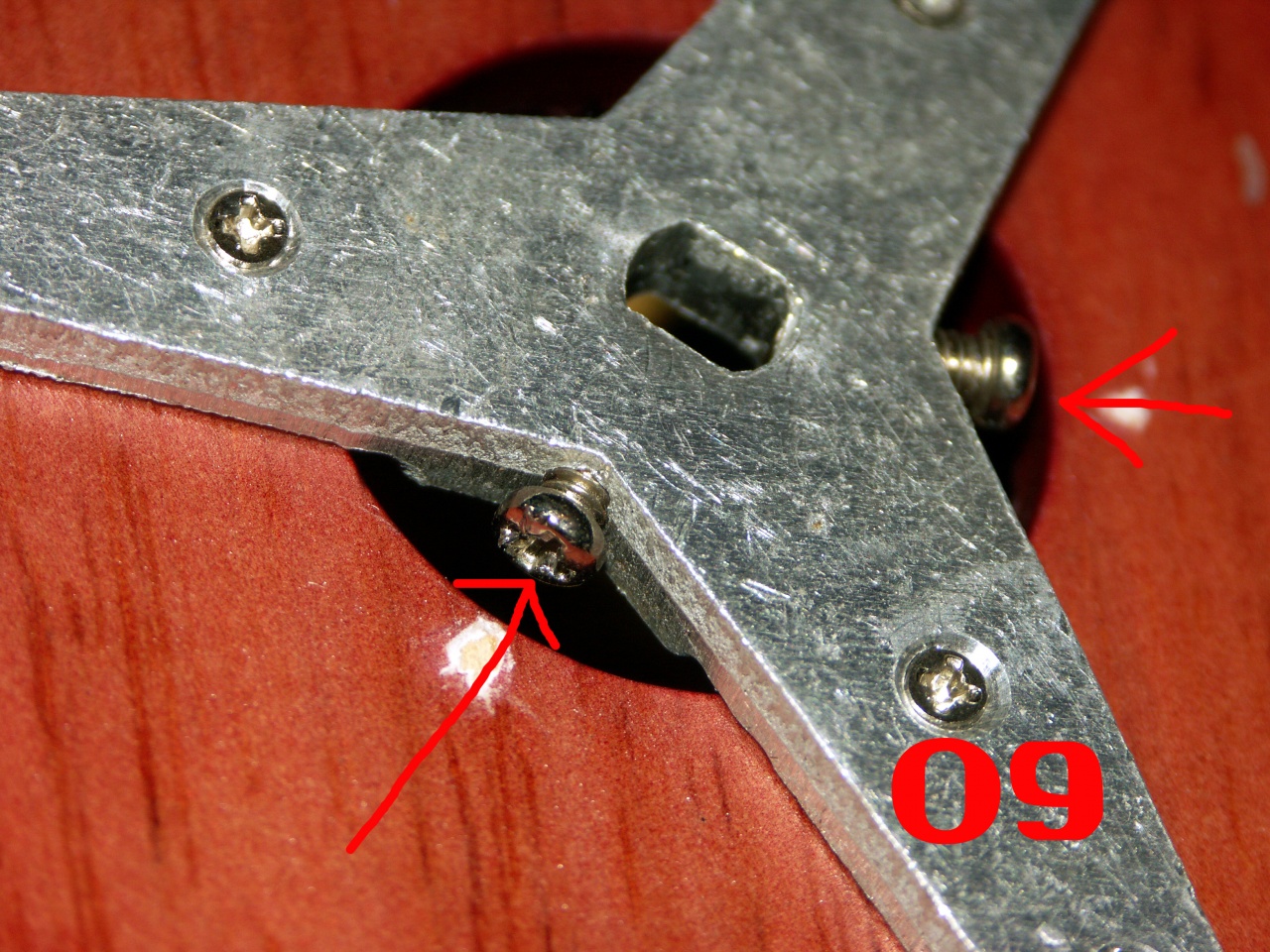 Внутри по центру каждой титьки обнаруживается мощный латунный винт, отвинтив который, мы опять-таки обнаруживаем, что ни хрена не изменилось. А почему? А потому, что титька сидит на валу не просто так, а поджата двумя винтами, показанными стрелочкой. Добраться до них никак нельзя, и как их фиксировали маленькие китайские ручки – загадка. Наверное, получилось, потому как маленькие. Снаружи ухватился тонкими плоскогубцами, ослабил джекичановскую хватку винтов и снял с вала титьку.
