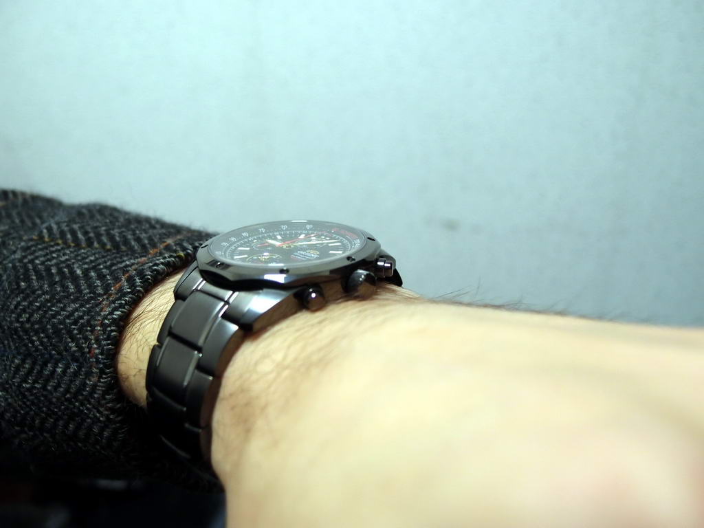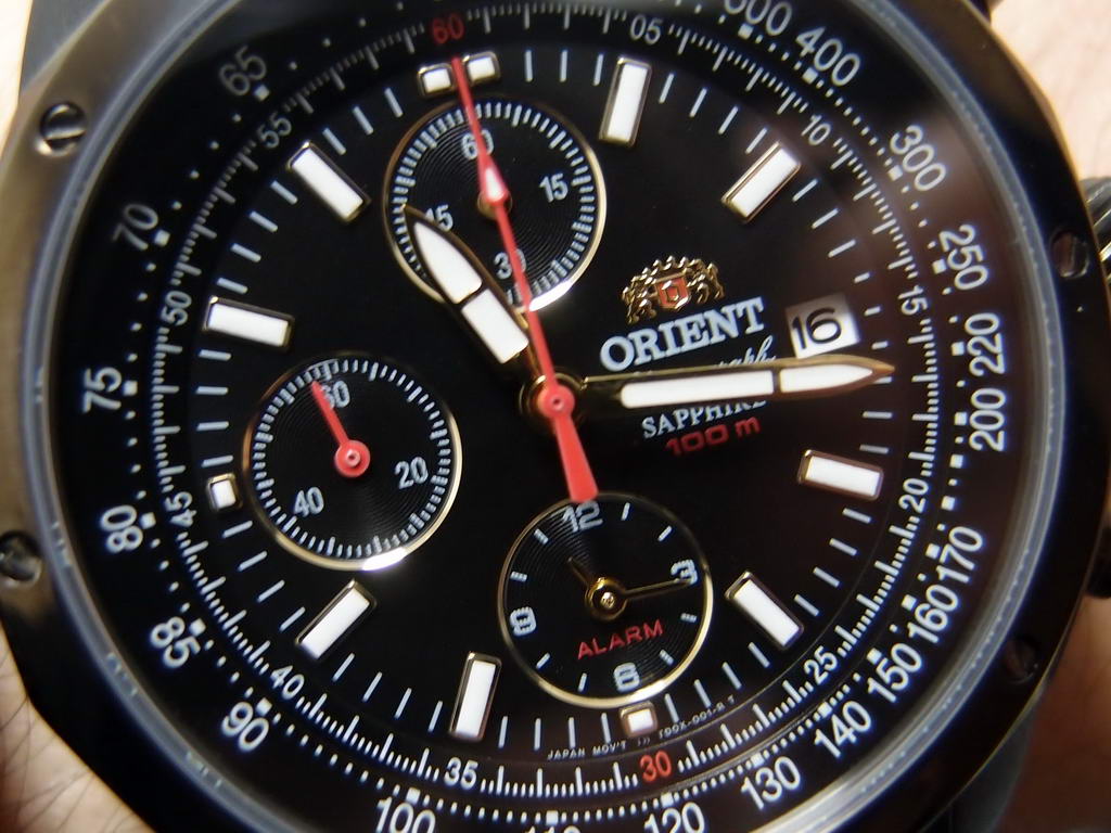 Кварц. Диаметр 40мм без ЗГ. ЗГ завинчивается. Сапфир. Люм на стрелках средней яркости, на метках тусклее. Цвет покрытия темно серый, не черный, очень маркое. Перед фото сессией пришлось основательно поработать тряпочкой. Браслет литой, кроме вставок на шпильках, ИМХО аккуратный и комфортный. Ось между застежкой и первым полу-линком была впрессована криво, выступала на пару мм и мешала нормально застегивать/открывать пряжку. Два удара молотком решили проблему раз и на всегда. Будильник для галочки - тиховат и выставлять не удобно. Еще одна особенность, ручной перевод даты с 31 на 1 у моего экземпляра нужно делать вечером, иначе сбивается и начинает автоматом перещелкивать в полдень, а не ночью. Странно, что пару Сеек на аналогичном калибре 7T62, нормально перевожу с утра. Кстати, где то слышал что кварцевые калибры для Ориента и Сейки делает Epson, так ли это? Сейковский 7T62 тоже?