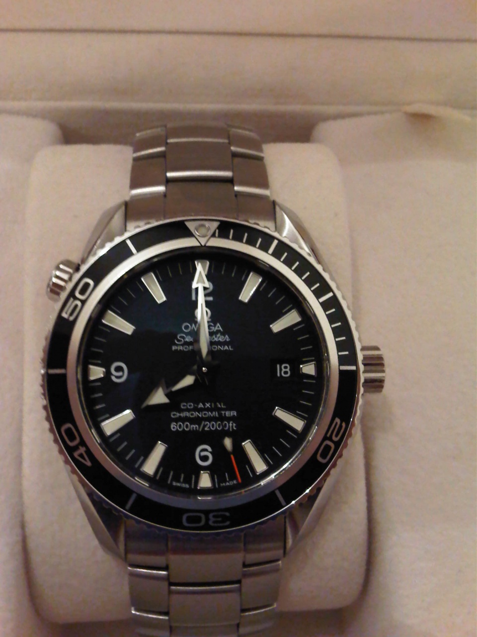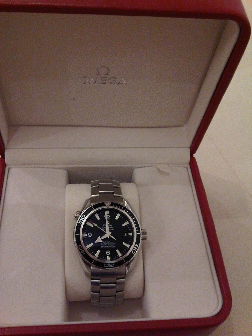 Продается Omega Seamaster Planet Ocean, диаметр 42 мм., на браслете. Куплена в прошлом году в июне у официального дилера в Западной Европе(соответственно, еще почти два года гарантии производителя). Состояние "5-", небольшая царапина на безеле в районе 9 часов, мелкие царапинки(неизбежные при ношении) на полированных боковинках корпуса.