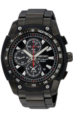 Часы-хронограф с секундомером и тахиметром. Секундомер до 60 мин и точностью 1/5сек. Тип механизма: кварцевый. Калибр 7T62. Корпус: сталь с PVD покрытием. Циферблат: черный. Браслет: стальной с PVD покрытием; Водозащита: 100WR. Подсветка: люминесцентные стрелки и метки; Звуковой сигнал: будильник. Стекло: минеральное повышенной прочности. Календарь: число. Размер: 43х43х10 мм.