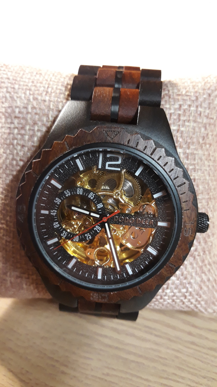 Глянув на богатства Али-экспреса, решил прикупить часики китайского прома. Не в качестве основных часов, а в качестве эксперимента и "шобы былО". Взгляд упал на экзотическую штуковину фирмы Dodo Deer, экзотичность 2 в 1 - скелетон в дереве (см. фото). У меня никогда не было скелетонов, а про деревянные часы узнал только на Али. Так что пусть будут... Какого-либо номера/названия у часов нет, нет также номера у часового механизма.