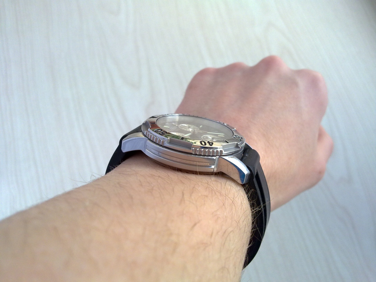 Состояние хорошее, черный циферблат, каучуковый браслет (не родной, заменен браслет).