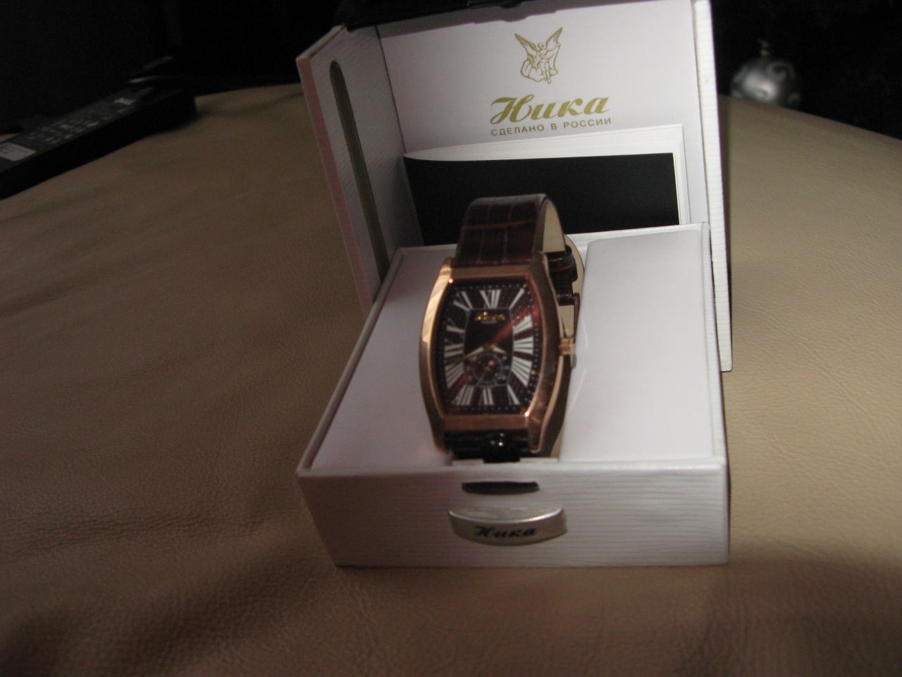 Комплектация: коробка, часы на кожаном ремне, инструкция, чек.