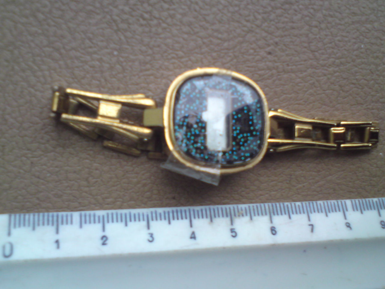 Часы Полет с черным циферблатом золоченые. работали исправно, при замене батарейки мастер отломал дужку... - 100р.