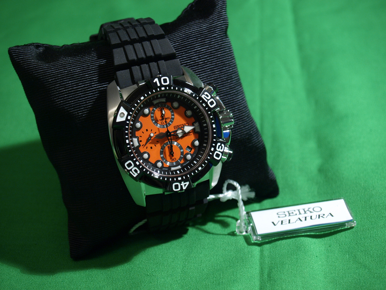 Представляю Вашему вниманию новый мужской дайвер производства Seiko: Velatura SNDA63P1; красивые, крупные часы, с настоящим дайверским хронографом, рассчитанные на погружение с аквалангом (200 м), с вставками с покрытием нитридом титана. Достойный продолжатель традиций SBCM023, и стоит каждой копейки своей цены. У заграничных почитателей данная модель именуется VOV - Very Orange Velatura. =)
