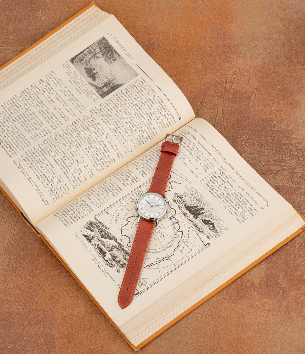Часы Альбатрос Terra Australis придуманы и сделаны в память о большом и очень рискованном приключении, в которое отправил русских моряков император Александр I. Речь о «Южной экспедиции» на шлюпах «Восток» и «Мирный» под командованием Ф.Ф. Беллинсгаузена и М.П. Лазарева в 1819-1821 годах. Сейчас её называют «Первая русская антарктическая экспедиция». Тогда предполагаемый на юге материк называли не Антарктидой, это название стали применять много десятилетий спустя. Искомую гипотетическую землю называли Terra Australis на латыни, языке науки тех времен. Русские моряки звали её просто «южная земля».