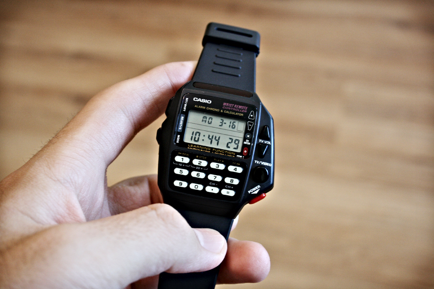 Казалось бы - обычные касио-калькуляторы, однако если прочитать полное название "Wrist Remote Control Watch" и обратив внимание на панель с четырьмя кнопками слева все становится понятно - часы снабжены встроенным пультом дистанционного управления