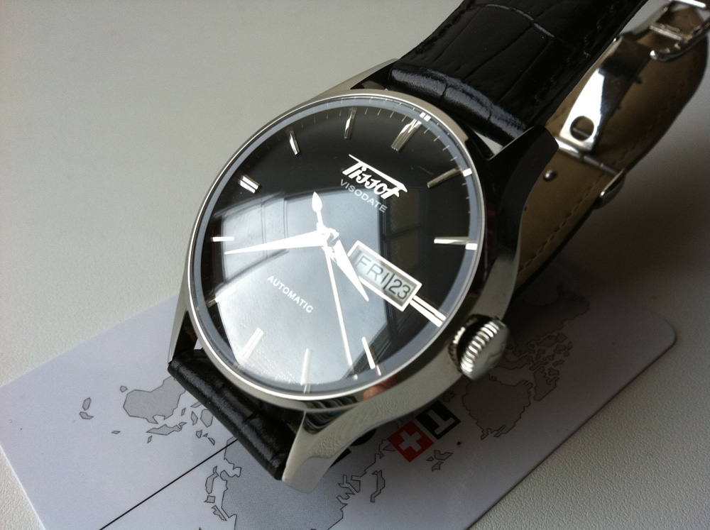 На всемирной часовой выставке BaselWord 2010 Tissot представил новый Visodate. Похоже, совершенство скрывается в простоте. Перед нами очень элегантный трёхстрелочник с датой и днём недели. Сапфировое окно на задней крышке корпуса демонстрирует владельцу механизм. Корпус часов диаметром 40 мм выполнен из практичной нержавеющей стали, стекло сапфировое с антибликовым покрытием, водонепроницаемость – 30 м. Внутри – ETA 2836-2; 25 рубиновых камней, запас хода – 45 часов.