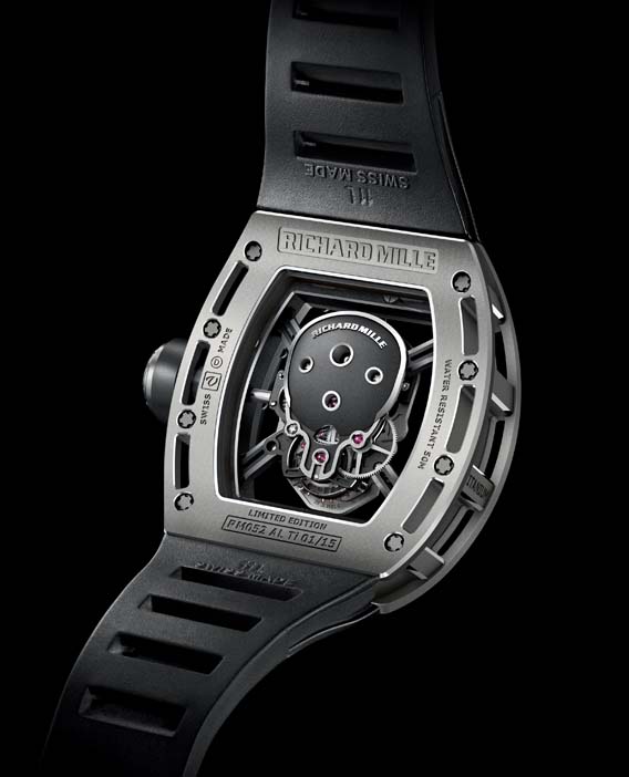 На женевской выставке Salon International de la Haute Horlogerie (SIHH-2012) швейцарская часовая компания RICHARD MILLE представила свою новую скелетонизированную модель Tourbillon RM 052 Skull, отличающуюся тем, что детали механизма скомпонованы в виде черепа в центре циферблата.