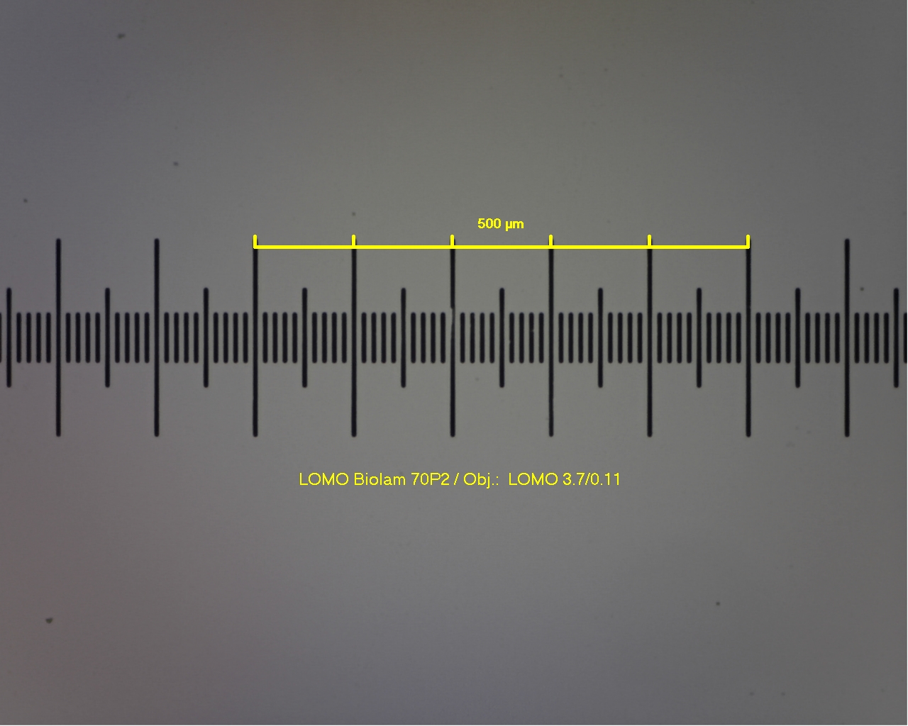 Нам можно проверить с другим объективом. Вот, разрешающая способность объектива, ЛОМО 40/0.65, то есть 0.4615 мкм (для свет синего цвета). Комбинированное разрешение камеры и объектива 0.0670600 мкм на пиксель или приблизительно 6,88 пикселей.