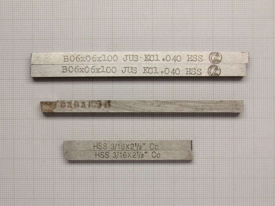 Прошло время и у меня попались настоящие резцы и тогда я узнал, что в книгах все правильно написано. Синюю сталь намного легче точить чем мягкой, она не гнется, поверхность получается гладкой, стружка не прилепается к резцу - сравнение - как твердая латунь и красная медь.