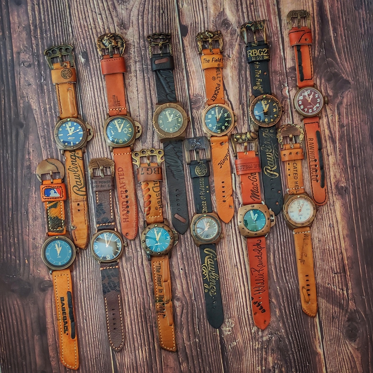 Пополнение коллекции бронзовых/латунных часов на ремешках моей работы из бейсбольной перчатки