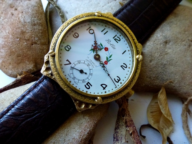 Хороший вариант, для алюминиевой бронзы я использую собственно разработанный состав для чернения на основе серной печени и портахрома, потом частично зачищаю, что придаёт интересный "винтажный вид", но это всё на стадии изготовления деталей. Вот одни из любимых часов моей супруги из алюминиевой бронзы, так что "бронза" не только для мужиков