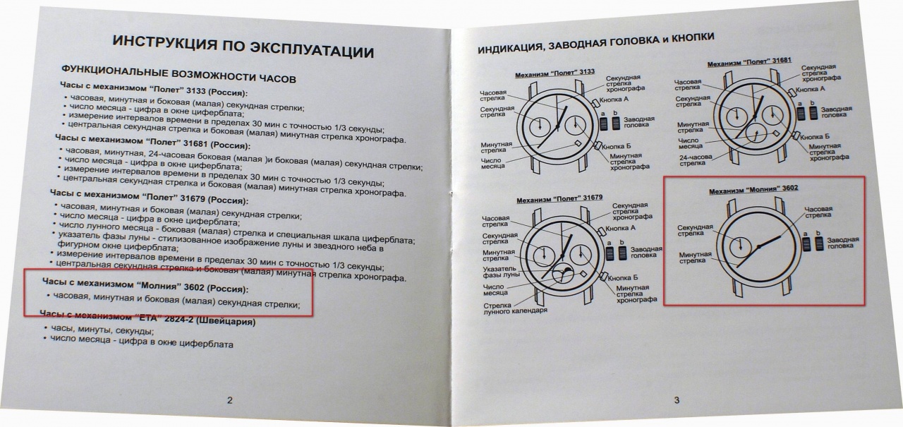 Завод механизма происходит с очень чёткими приятными пощёлкиваниями. Ход громкий, явно слышимый в тишине комнаты даже на расстоянии вытянутой руки. Очень понравилась, так сказать, "архитектура" механизма. Сконструирован и изготовлен механизм на самом деле красиво. Натуральная это "Молния" или родом из Поднебесной, я не знаю. Присутствует надпись: "SHOCK RESISTANT 18 JEWELS", информации о месте изготовления на самом механизме никакой. В прилагаемом же к часам паспорте значится, что они оснащены механизмом "Молния" 3602 (Россия).