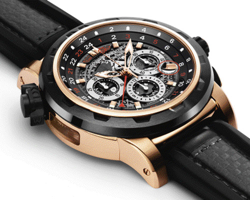 Широкая кромка вокруг циферблата, или réhaut, имеет 24-часовую шкалу второго часового пояса, который можно выбрать на свое усмотрение, а светлый или темный оттенок шкалы позволяет быстро определить время суток. По шкале движется красный кончик ультрадлинной скелетонизированной часовой стрелки, который показывает время в выбранном на данный момент часовом поясе. Часовая стрелка меньшего размера показывает местное время того пояса, в котором сейчас находится владелец часов. Минутная и секундная стрелки едины для обоих часовых поясов. Второй часовой пояс можно настроить по часам, просто потянув за заводную головку до первого упора. Это очень полезная функция для работников банка или бизнесменов, которым всегда нужно следить за тем часовым поясом, в котором сейчас находится их главный бизнес-партнер.