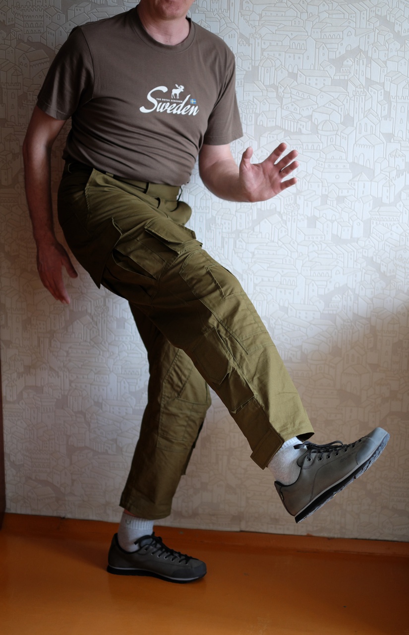 Это не карго как таковые, но всё утягивается, регулируется длина, очень удобная регулировка пояса, есть скрытые карманы на молнии сбоку (не меньше, чем у карго и при этом их вообще не видно), удобно тоже в поездках, аэропортах и т.п.