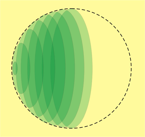 При этом сфера, например, начинается с точки, увеличивается в диаметре до максимума и затем опять сжимается в точку. Последовательность этих проекций можно представить слоеной "стопкой" из окружностей.