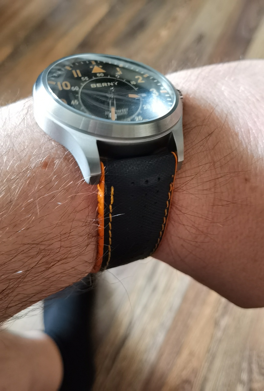 Ремень конечно же кустарный. По случаю , пару лет назад приобрёл по картинкам в интернете. Не подошёл ни к одним часам. Валялся без дела. Попробовал на эти часы, и очень комфортным показался. На руке очень хорошо сидит. Родной каучук неплохоц, с часами идёт. И Hirsch есть подходящий.