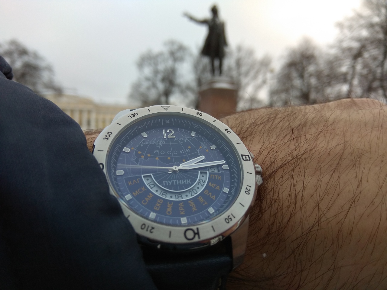 В принципе часы нормальные.Размерчик мой,заводная головка норм,цифер красивый,возможность узнать время в разных часовых поясах России радует.Могу даже назвать экстерьер часов патриотичным.