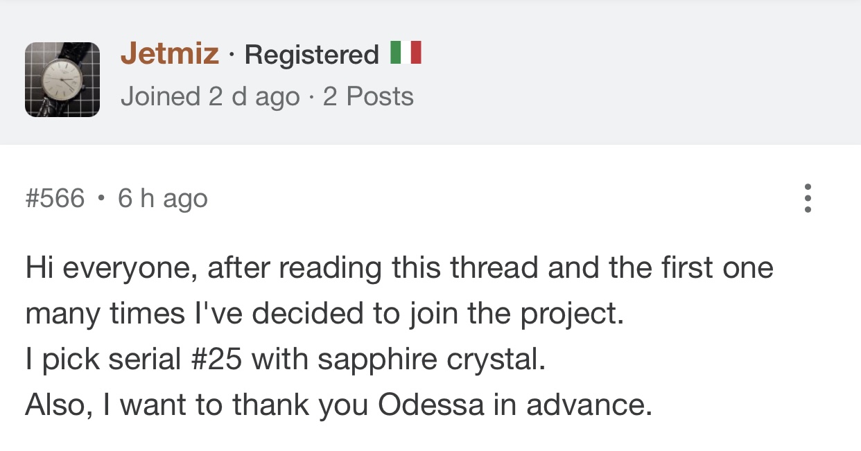 Пилот-дайвер, по мотивам первых часов с поворотным безелем Список участников."Пилот-дайвер, по мотивам первых часов с поворотным безелем"