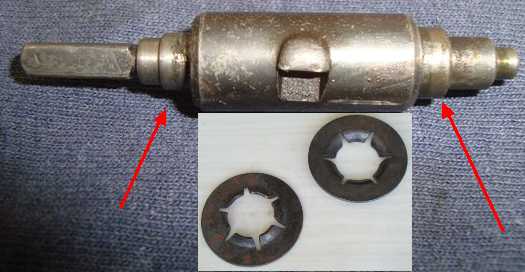 На мысль навело полностью подобное крепление колес на осях детских колясок и газонокосилок. Кольца - одноразового применения - снять без повреждения практически невозможно. хотя невозможного ничего нет .