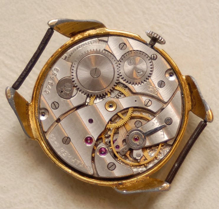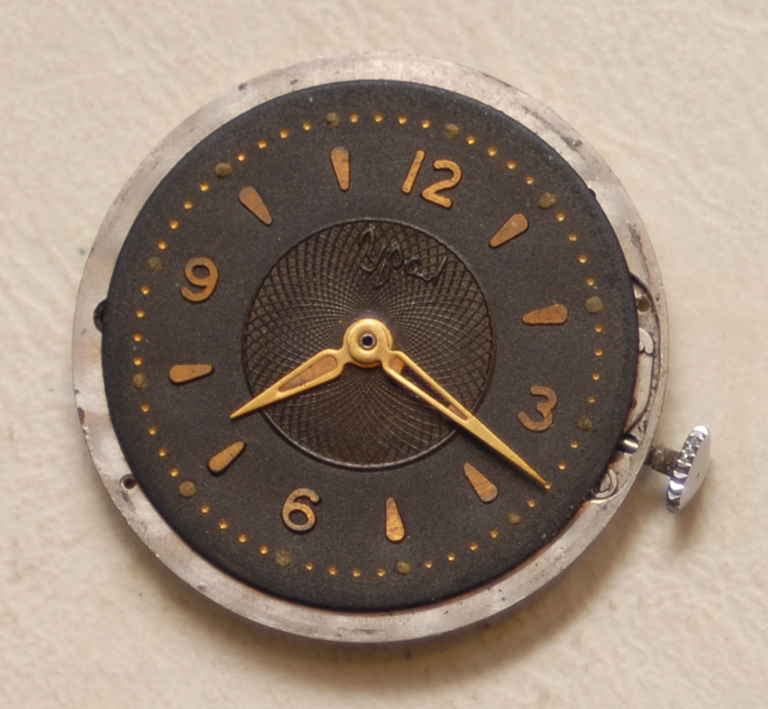 Как я понимаю это поздний вариант часов (начало 60-х). Циферблат соответствует трехстрелочному механизму. На форуме упоминалось что механизмы и циферблаты могли и пересекаться. Но тогда почему в механизме есть колесо секундной стрелки, а самой стрелки нет.