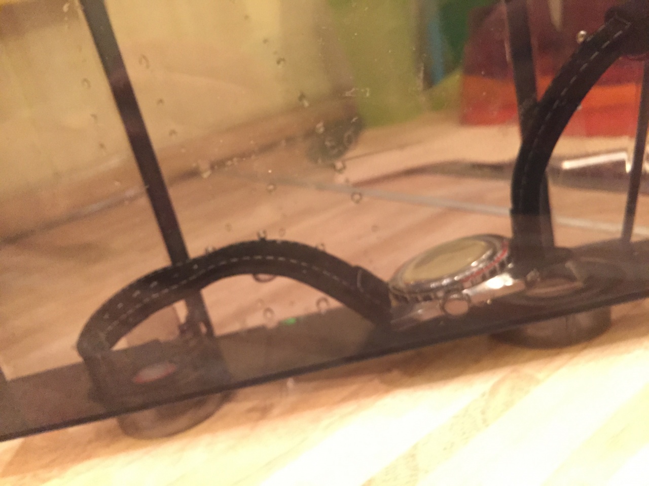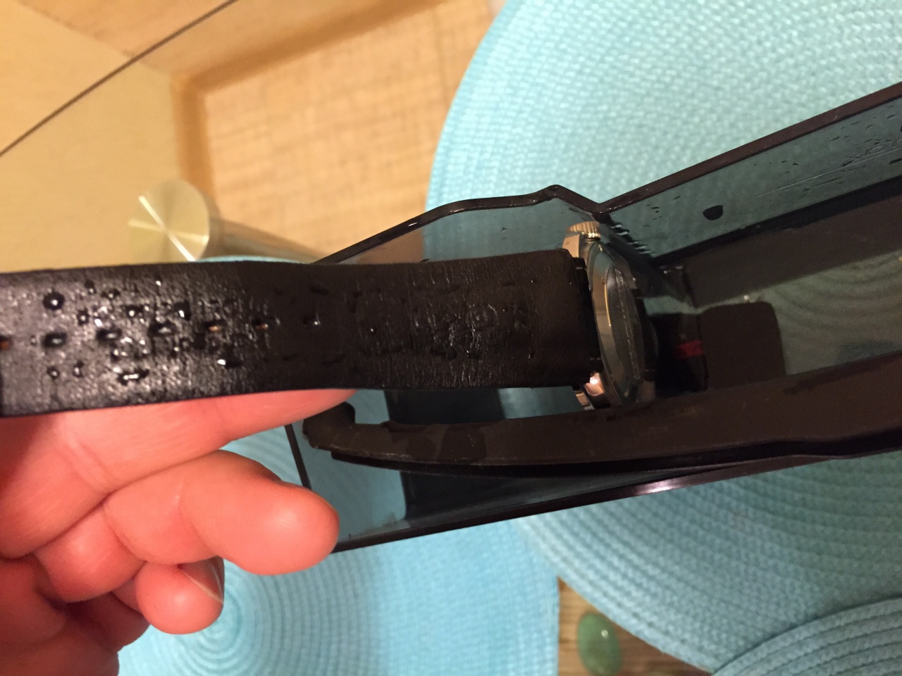 Потом не удержался и себе такой же, но синий прикупил на свою синюю Amfibia Reef ремешок. Тоже где только не был - кроме бани и бассейна с хлоркой. Бывало от пота и пыли темнела прострочка на ремешке, так зубная щётка и мыло в два счёта возвращают первозданную белизну. Вот из последнего: