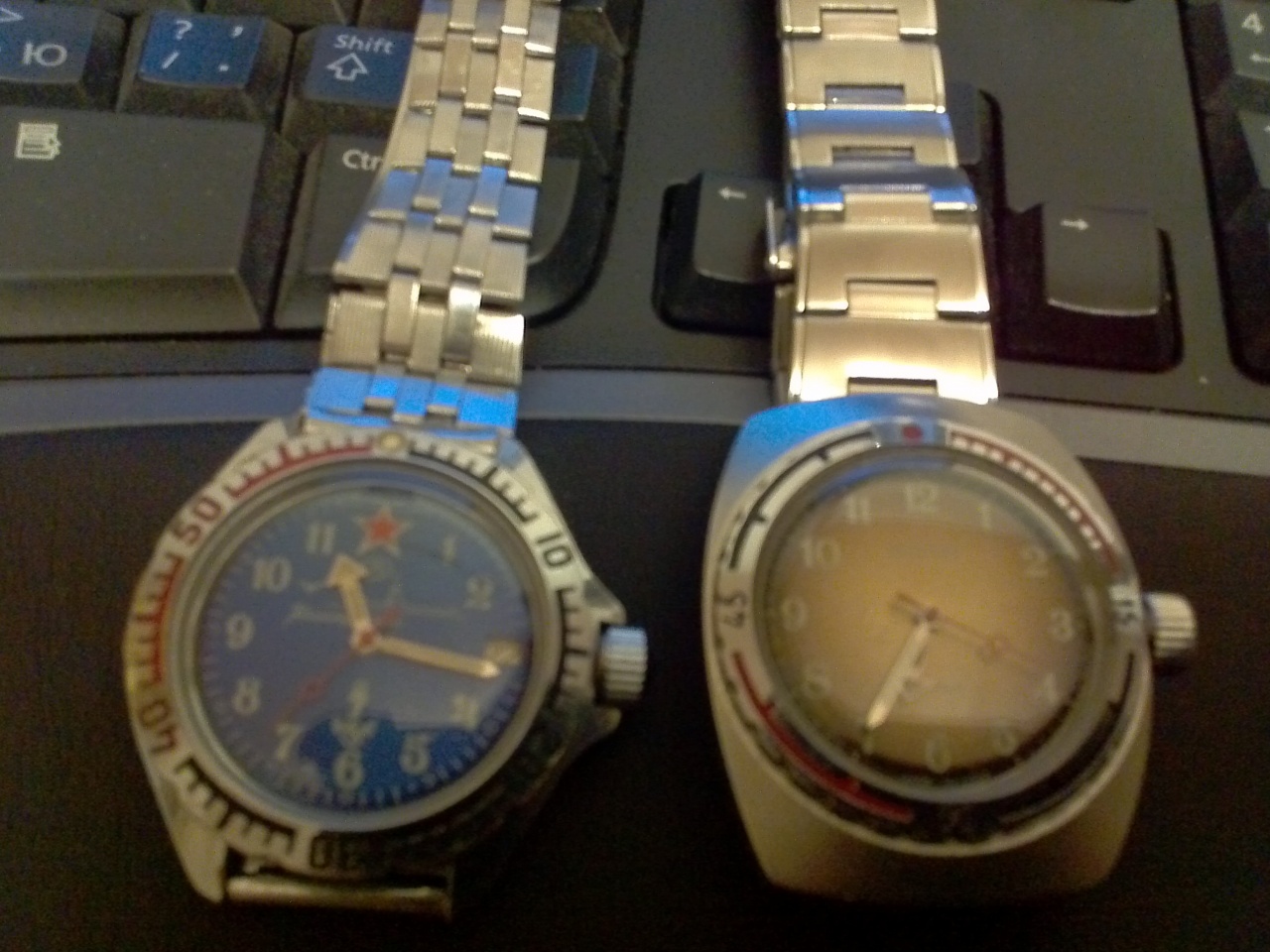 Не то что в городе *******.. Был однажды в гостях там... Встали "амфибии"(Восток 2416б). Особо не было возможности искать, зашел в первый подвал. Заодно, дурак, попросил стрелки поменять(краска у моих обсыпалась). Часы пошли(сказали что-то попало, в механизм особо не лазили). Но стрелки... Кривоватые они, причем у основания поцарапаны весьма, как будто их ножом с силой насаживали, и цифер около стрелок немного... Боюсь представить с какой силой насаживали. Часовая вплотную к циферу чуть вверх конец торчит, минутная горбатая, и тоже вверх. Впопыхах все было, заметил уже в дороге...