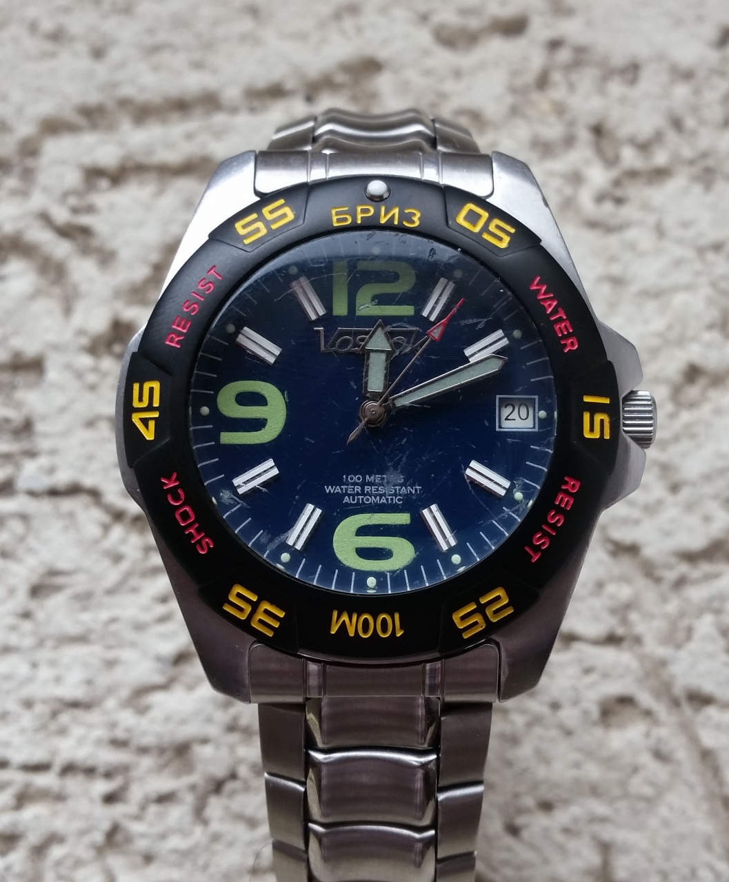 Увидел в продаже Бриз на Мешке. Из видимых косяков было- покоцанный безель, отсутствие накладного логотипа «Восток «на цифере», царапины на стекле, подубитый укороченный браслет.