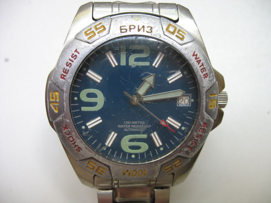 Увидел в продаже Бриз на Мешке. Из видимых косяков было- покоцанный безель, отсутствие накладного логотипа «Восток «на цифере», царапины на стекле, подубитый укороченный браслет.