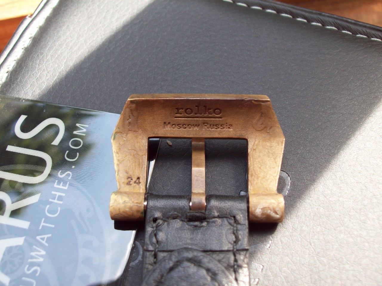 Родной кожаный ремень практически новый на 5-, каучук с бронзовой баклей в очень хорошем состоянии. В комплекте так же коричневый кроко (одевался пару раз), винтаж в состоянии 4- (он в основном и носился) и массивная бронзовая бакля от Ролко..