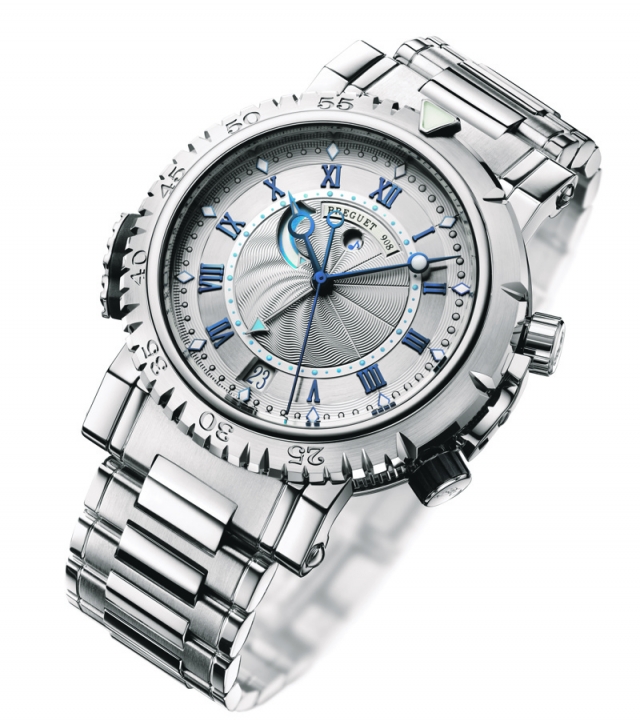 Характеристики: стальной корпус 46 мм, завинчивающаяся задняя крышка с дополнительным резиновым кольцом, WR 100 м, хронограф до 1/20 с, 60-минутный и 12-часовой счетчики, индикация даты, будильник со звуковым и вибросигналом, стрелки и индексы с люминесцентным покрытием, стальной браслет или кожаный ремешок на выбор
