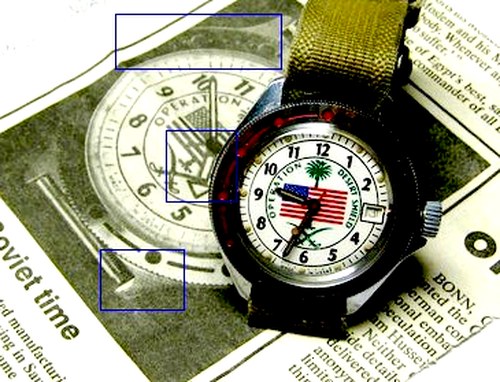 Еще . Сделав пиндосам ( ой ...) часы, Восток на этом не успокоился. В последствие было много моделей в которые вставлялся циферблат "Operation Desert Shield". Основное отличие этих циферблатов было в том , что отсутствовала надпись "Made in USSR" ( Союз уже развалился. Если посмотрите фото 2 , то там дата - 28 января 1991 года, а через год (26 декабря) Союза не стало) и присутствовал знак Востока (В) в нижней части цифера ....