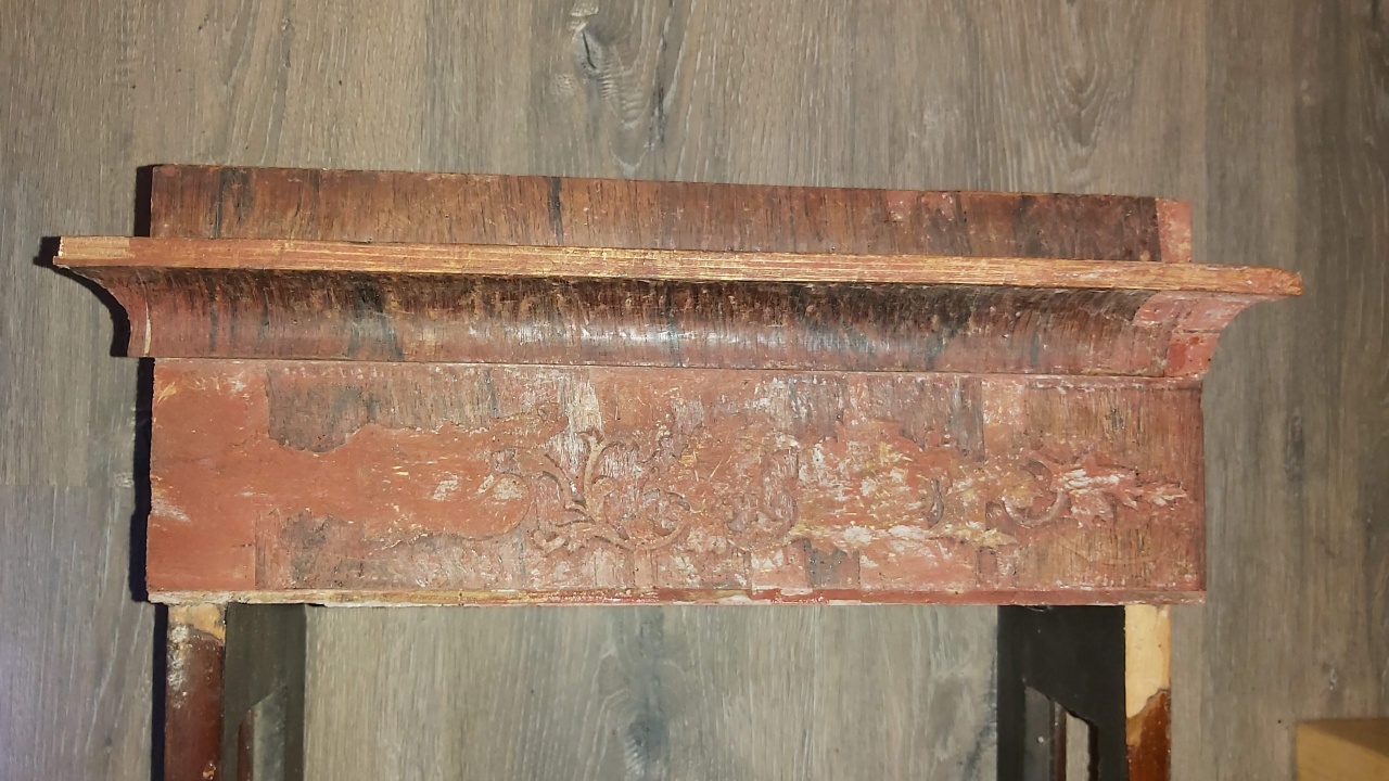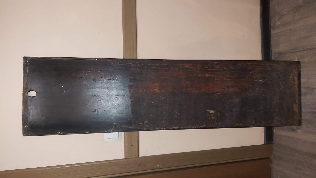 Кое как грея феном шурупы открутил и заднюю стенку снял, и пока работаю с ней. Чистка идет не быстро, грею и скальпелем счищаю 2 слоя новой краски, и что интересно, родная краска довольно неплохо держится, если хватит терпения, то постараюсь это порытие сохранить по максимуму, где содрал до дерева - подтонирую, может морилкой. И доску покрою воском целиком. Попробовал для интереса мокрой губкой родную краску потереть (с целью растереть) - бесполезно, как будто воск - вода скатывается и это мне понравилось. Доска состоит из двух и есть небольшая деформация по краям, постараюсь оперативнее все сделать, чтобы не повело сильнее.