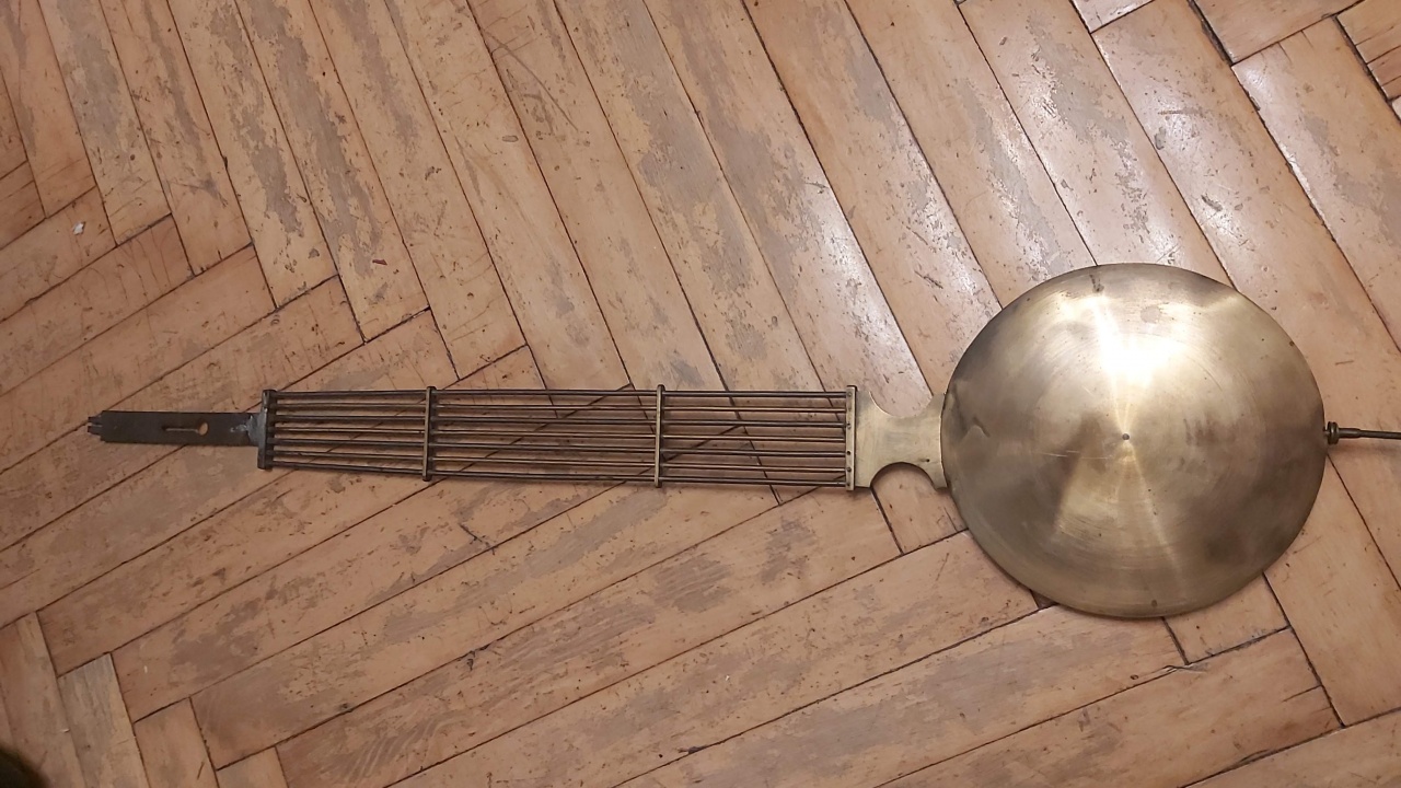 Часы были покрыты чем то вроде шпаклевки и покрашены в несколько слоев. Родной гонг утерян. Было одно боковое стеклышко в комплекте. Не было короны, не было одной накладки вверху, одной внизу, не было хвоста не бороде, и не было 99% инкрустации и не было 20-30% шпонирования.