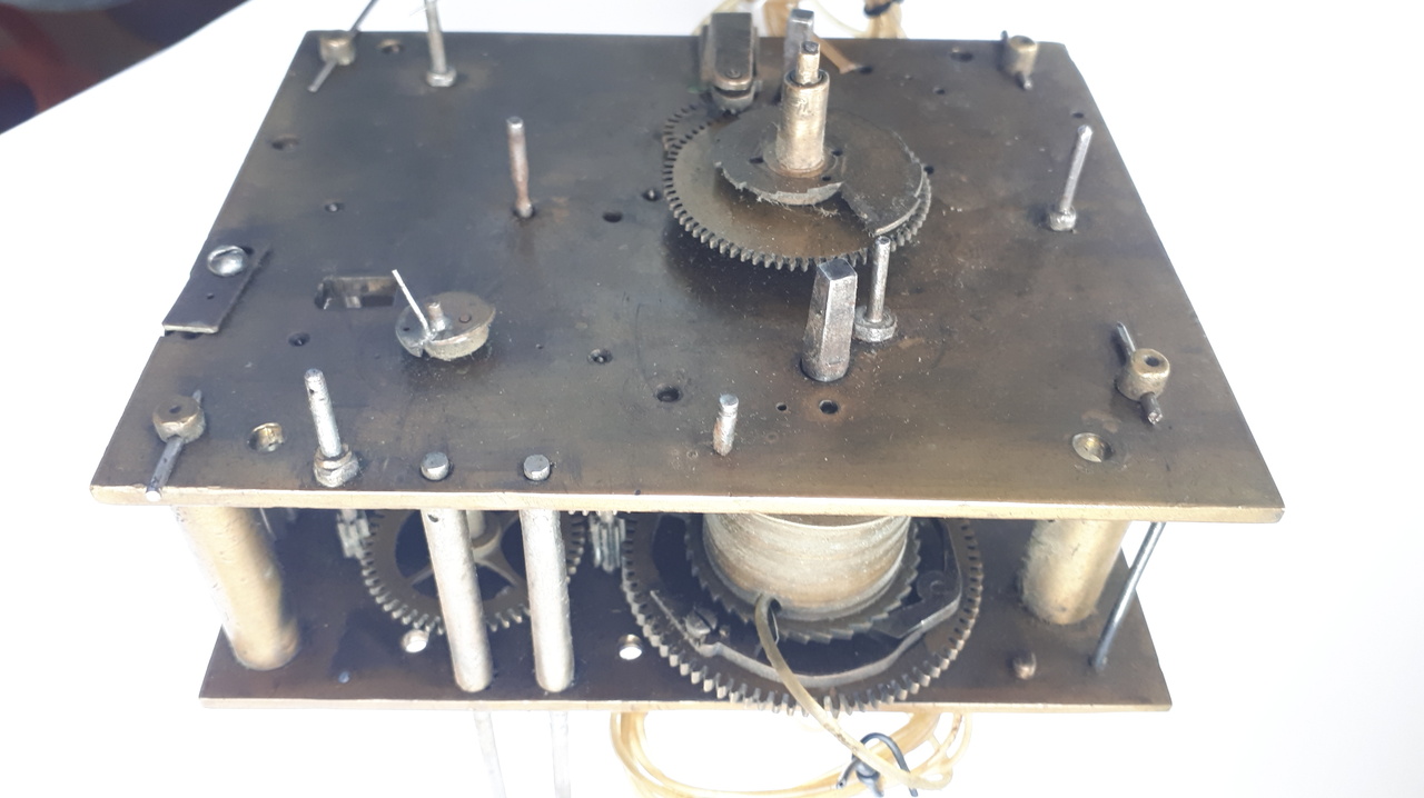 Часы еще не реставрировались, будут проводиться работы с корпусом, циферблатом, механизмом. Требуется ремонт анкерной скобы, замена стальных тросиков на жилы. Зато сохранился оригинальный ключик для завода, что является большой редкостью для 180-летних часов! Как вы думаете, стоит ли серебрить циферблат?