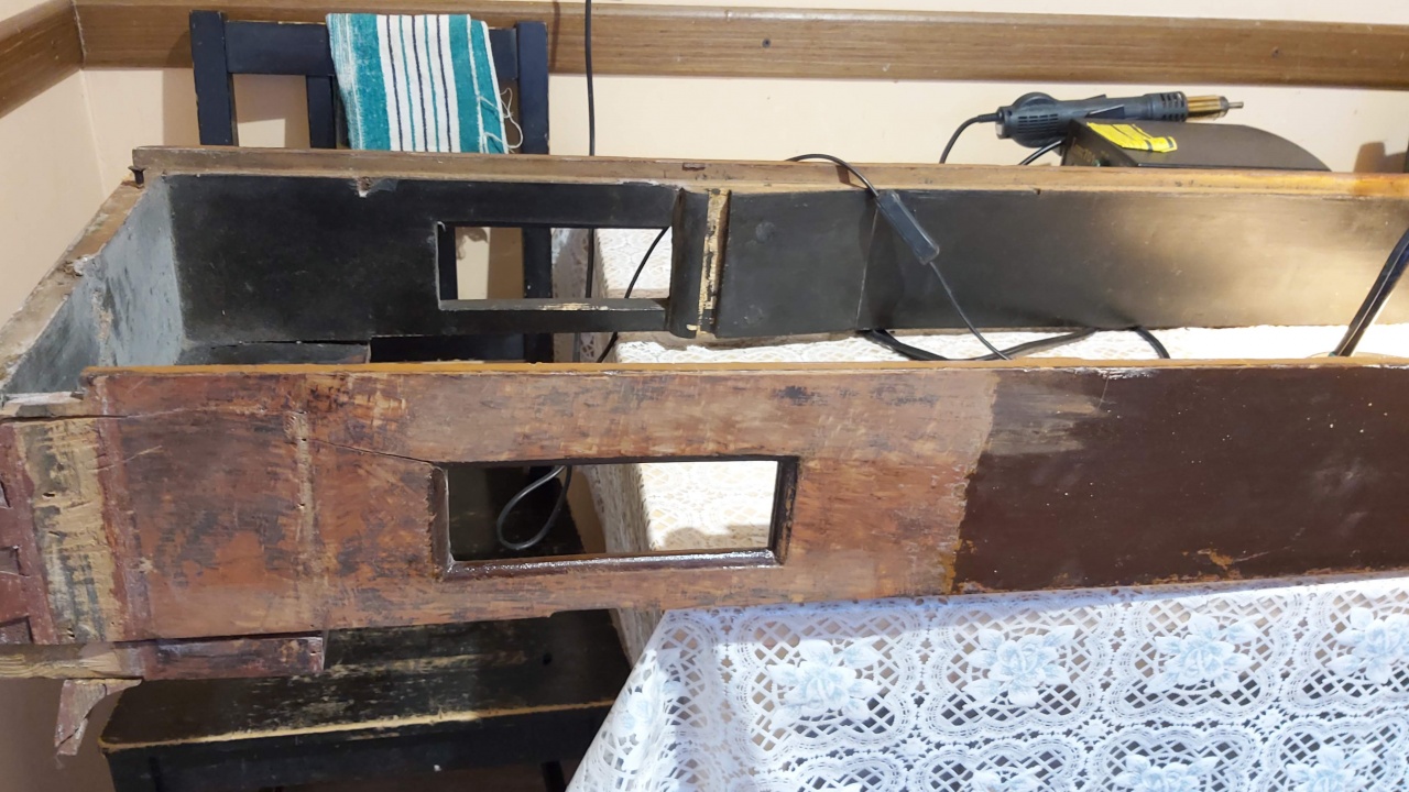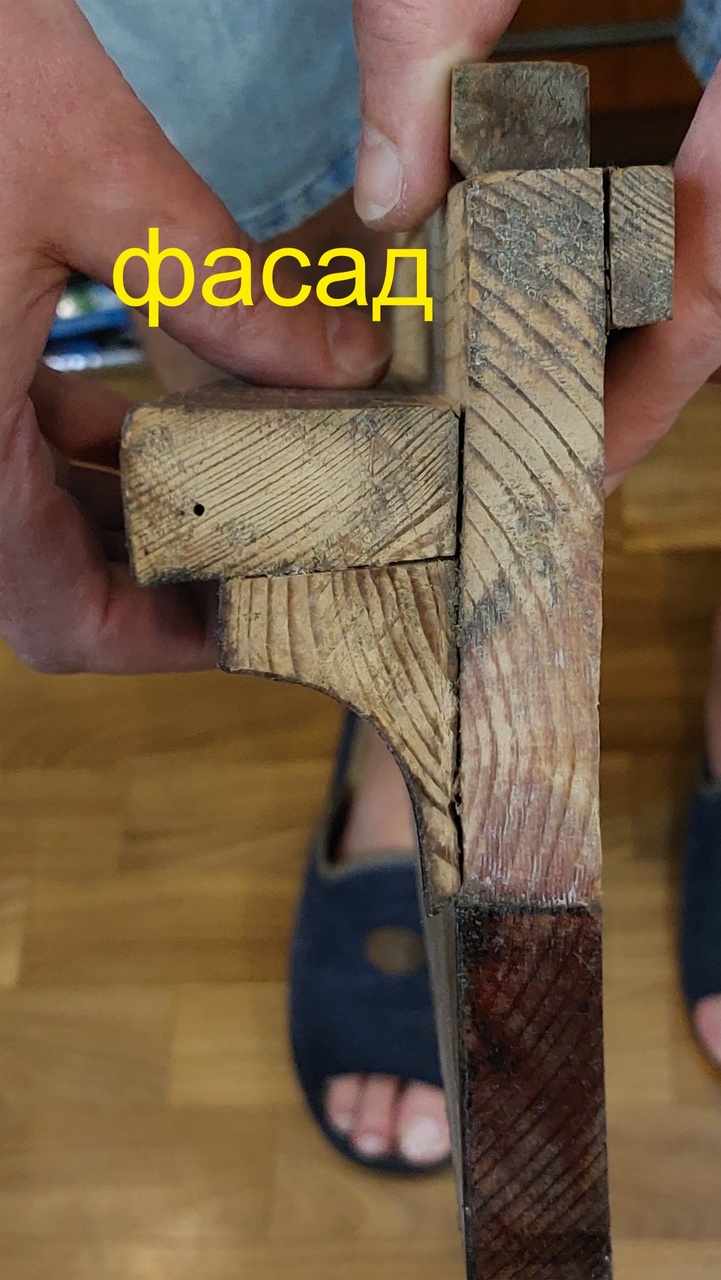 Очень похоже на это. Олег, спасибо! По всей видимости, доставшиеся мне детали боковых карнизов старые, но не оригинальные. В пользу этого говорит и материал деталей. Это либо дуб, либо ясень (время нивелировало разницу, я не могу понять точно). Но это дерево не встречается в других деталях корпуса.