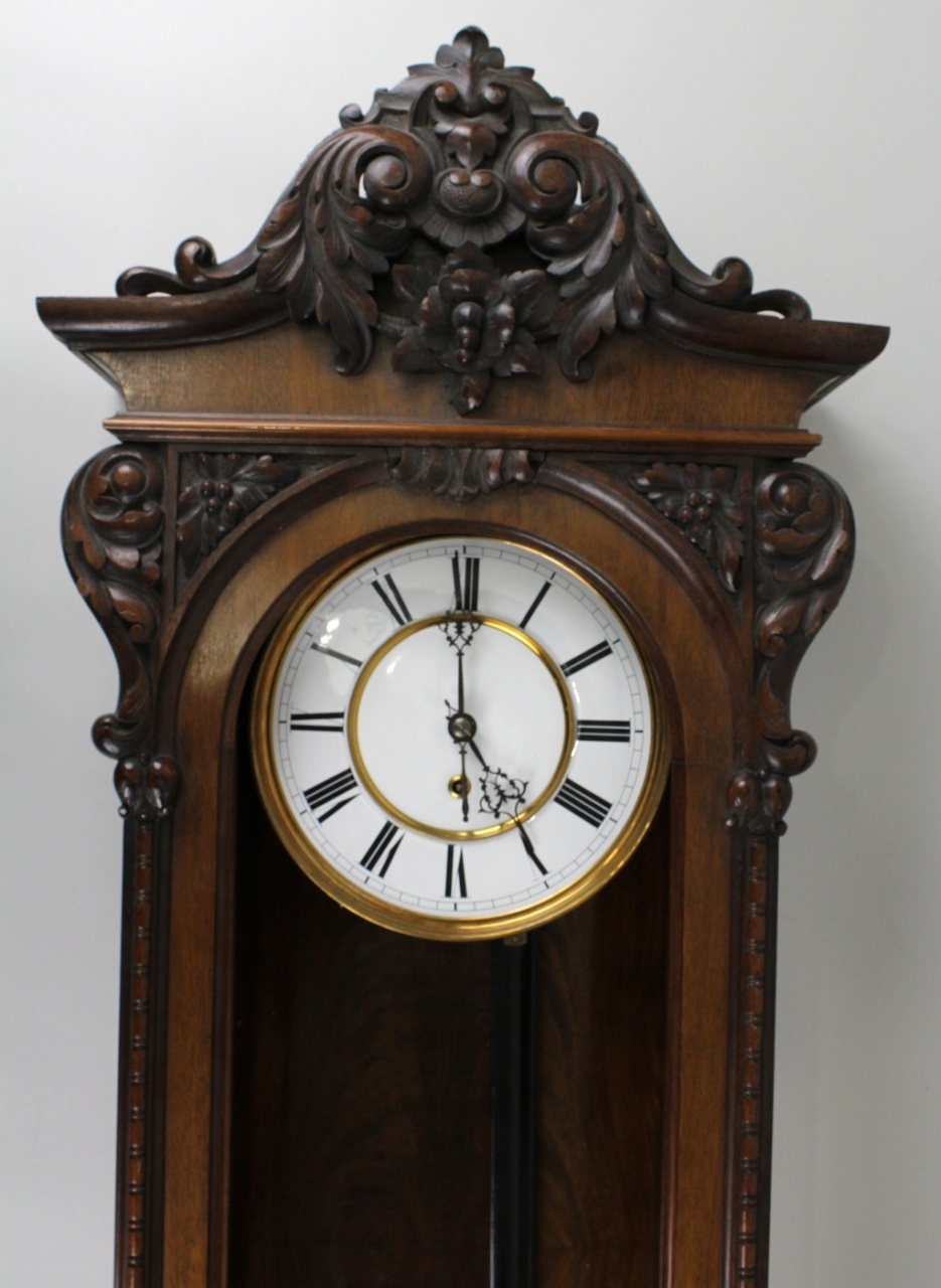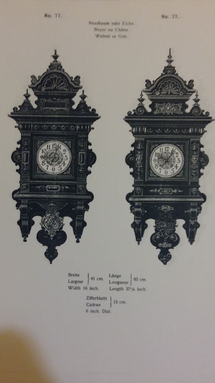 Наверший вариантов много. Покажу немного Freischwinger-ов из каталога 1903 года. Можно подобрать какое больше понравится. Часы с коротким маятником попадаются реже чем с длинным. У Вас боковые стенки открываются?
