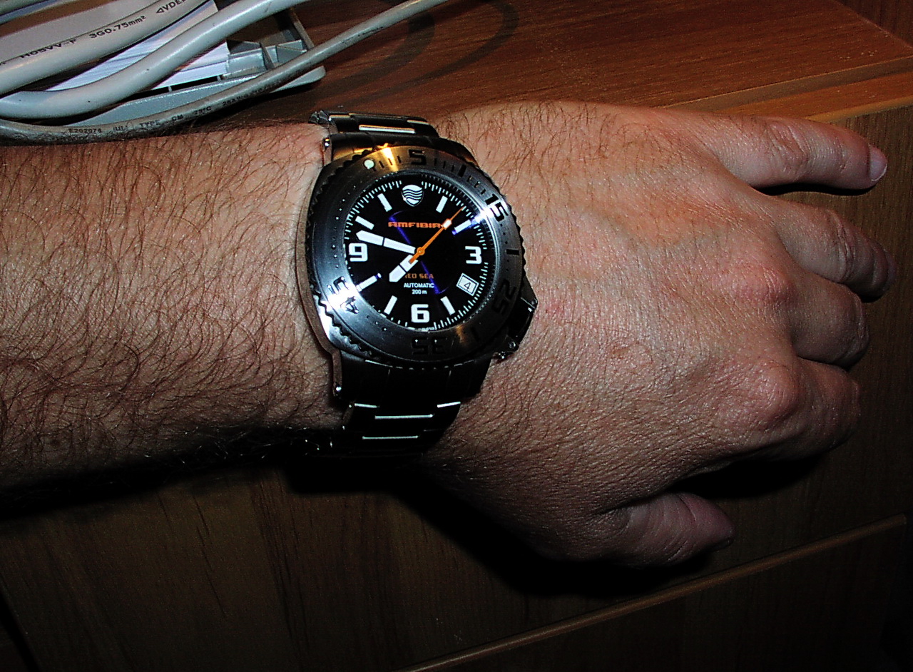 Что касается самих часов, честно не ожидал, что так неплохо выглядят, качество изготовления, на высоте учитывая их не большую стоимость. Буду, наедятся, что и механизм будет работать без нареканий. Выбирал между ними и "монстром", в итоге остановился на этих, да и в случае поломки или разбитого стекла будет возможность их отремонтировать. Цена у них будь, они изготовлены за рубежом была бы, наверное, в разы выше (исходя из характеристик и используемых материалов). Часики действительно тяжелые, но тяжесть ощущается, когда держишь их в руках, одетых на руку практически не замечаешь даже с первого раза, благодаря хорошей эргономике корпуса и хорошо ложащегося на руку браслета. На моем, не очень-то большом запястье, смотрятся вполне не плохо. Посмотрю пару нед. как работает механизм, если не будет нареканий, закажу себе такие - же.