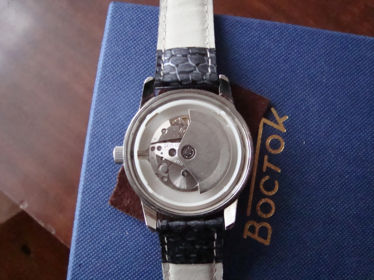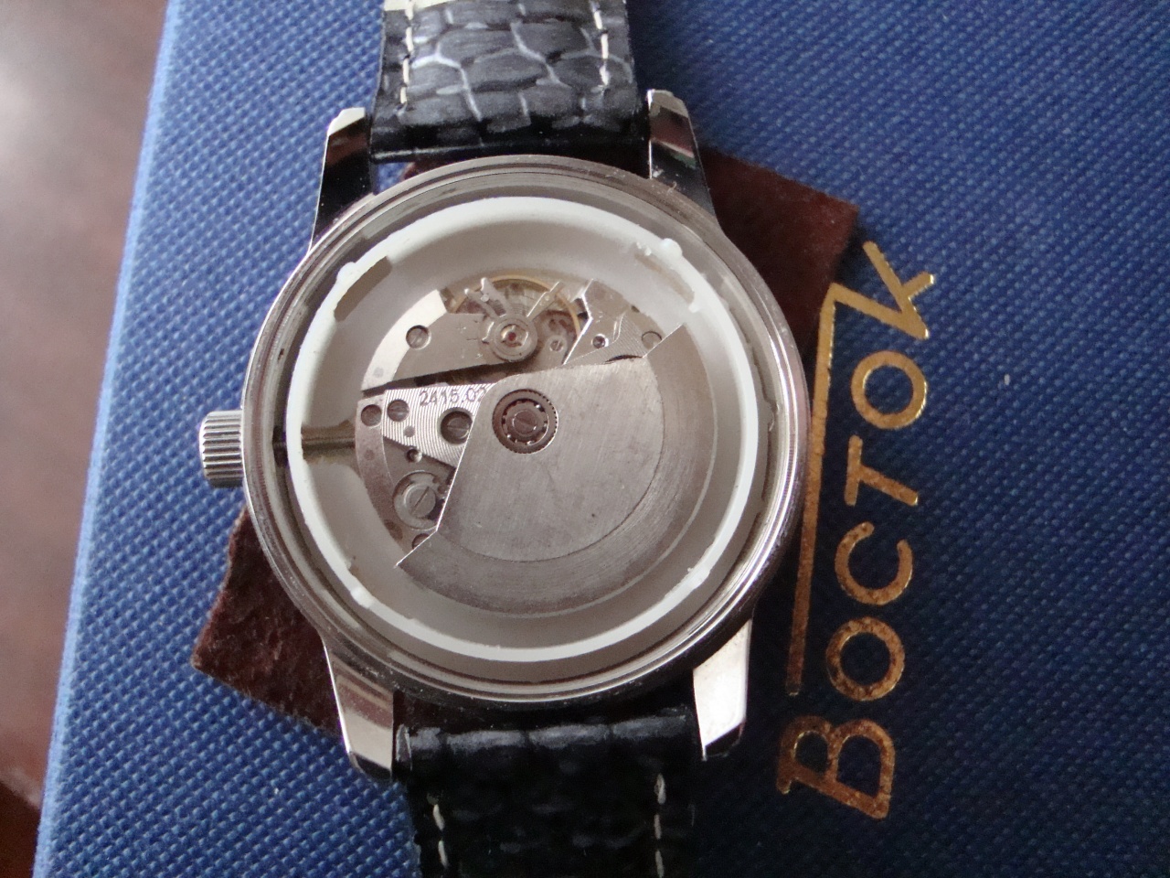 Сегодня у меня не выдержали нервы и я вскрыл часы, чтобы посмотреть, что же у них с автоподзаводом! На одном из сайтов о часах "Orient" я прочитал, что для полного завода часов достаточно в течении 5 минут раскачивать рукой, чтобы автоподзавод сработал и полностью завёл пружину. Я попробовал применить этот метод к часам Восток-Мегаполис, проделывал этот фокус каждый день по несколько раз. Всё равно больше, чем на четверо суток работы автоподзавода на хватает. Нервы у меня не выдержали и я вскрыл часы! То что я увидел повергло меня в шок. На фотографиях вы видите, что часовой механизм для крепления в корпусе помещён в пластиковый корпус (не знаю как точно называется эта часть часов). Для сравнения на последней фотографии показан механизм моих старых "Командирских часов". Там везде металл. Теперь вернёмся опять к фото Мегаполиса. Убогий маятник автоподзавода: на нём нет логотипа в виде буквы "В"; он гораздо меньше маятника, чем на "Командирских", лёгкий, вращается туго. Поэтому неудивительно, что он толком не работает. Я в ужасе от продукции часового завода "Восток"! Они ещё раз меня убили! Тут задавался вопрос: из чего сделан циферблат, не из пластика ли? Не знаю. Но после того, что я увидел внутри не удивлюсь, если это выяснится после того, как отнесу к часовому мастеру, чтобы он перебрал их, почистил, смазал и вынес свой вердикт: что же делают на часовом заводе "Восток" и будет ли работать автоподзавод в этих часах (может имеет смысл его убрать)? Да, глядя на эти потроха, как всё это сделано, у меня уже возникли сомнения и на счёт количества камней: а действительно ли там их 31, как заявляет производитель? Попрошу часового мастера проверить их количество.