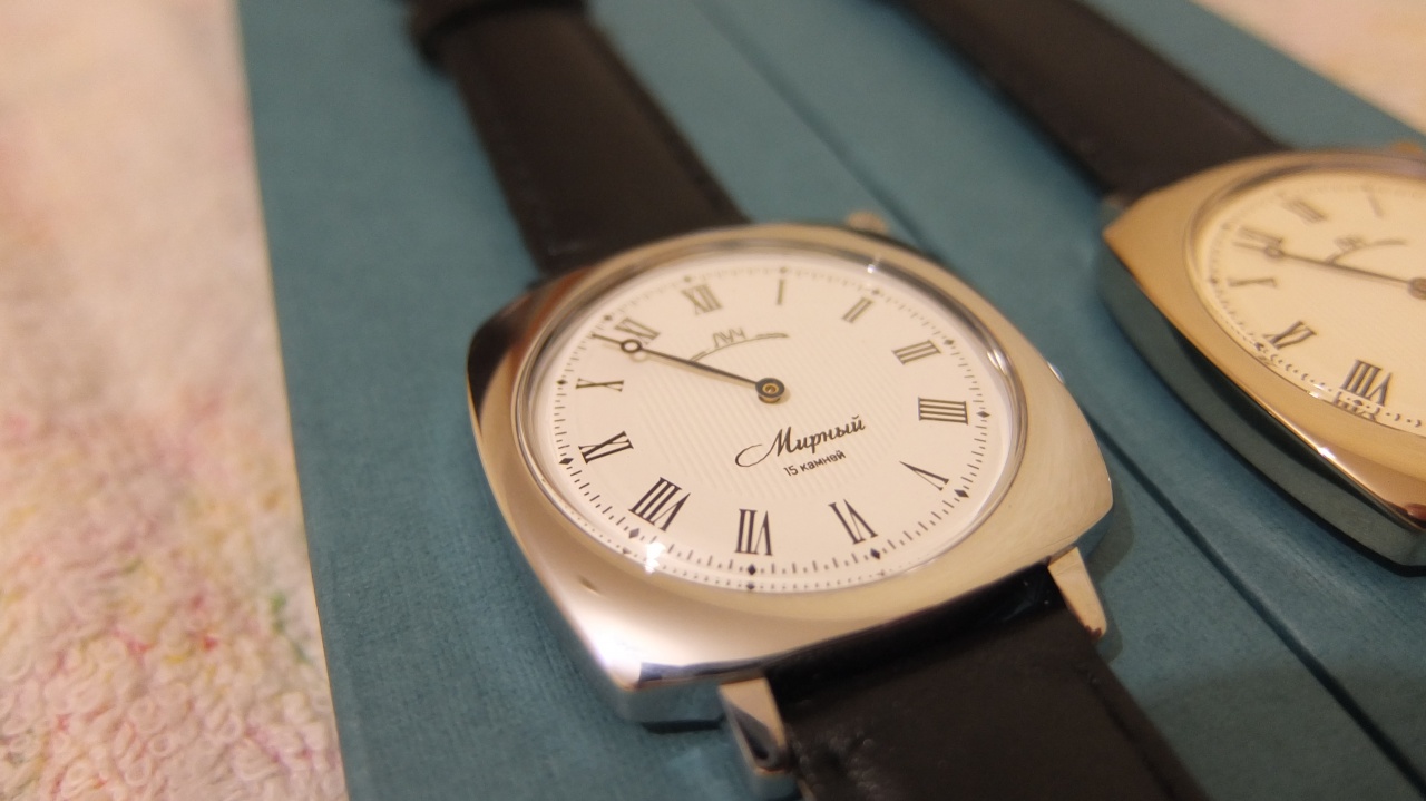 "Мирный" №09/18 - покрытие корпуса хром, белый рельефный циферблат.