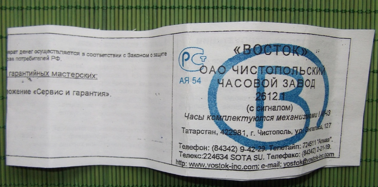 | восток сигнал 2612 |