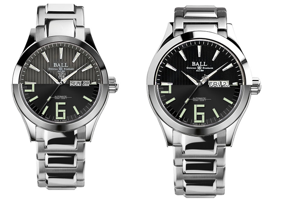 По идее расстояние от центра до окошек даты и дня недели для одного калибра должно быть одинаковым. Мне кажется, что лимитка на фото в корпусе 40 мм. Как и говорилось выше. А вот с размером цифр, конечно вопрос. Но что-то мне подсказывает, что сейчас не тот момент, когда Ball будет делать разный размер цифр для разного размера корпусов..