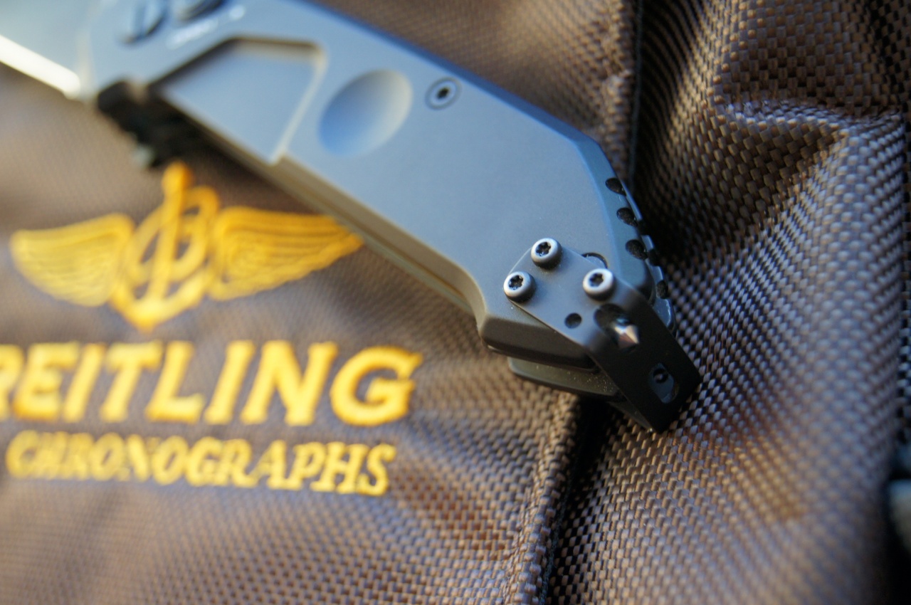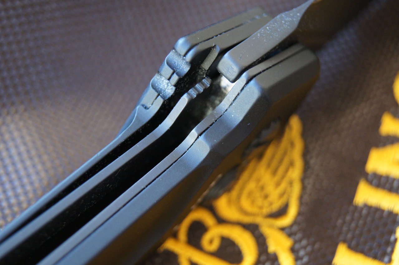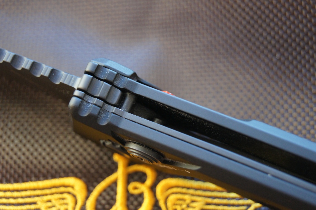 На самом деле все очень просто, механизм реализован на принципе действия обычного раскладного ножа, добавлены только две детали - пружина и клавиша (не кнопка) механизма открывания. Сначало мне это показалось не совсем удобно, но вложившись в нож как надо понял всю ее прелесть - тянешь клавишу на себя, лезвие выходит из зацепления и броисходит выброс, очень плавный, без перекосов и люфтов. Закрытие ножа происходит обычным способом для большинства складных ножей - пластиной снизу, которая фиксирует нож в открытом положении. Качество изготовления и сборки очень впечатляет - все очень аккуратно и при этом нет нагромождения деталей и лишних узлов. Очень интересно реализован, в задней части, узел для разбивания стекол. В общем, на мой взгляд, очень продуманная эргономичная конструкция.