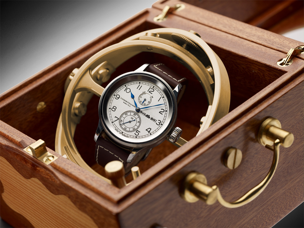 Корпус модели диаметром 47 мм и высотой 12.1 мм выполнен из полированной нержавеющей стали. Гравированный посеребренный циферблат выполнен из латуни и оснащен черными большими арабскими цифрами. Гравировка была осуществлена с помощью специальной техники в соответствии со старыми традициями, обеспечивающие точность маятниковых часов и хронометров. Основной циферблат оснащен двумя маленькими циферблатами: верхний циферблат, расположенный в позиции 12 часов, обозначает запас хода, а нижний циферблат с секундной стрелкой расположен в позиции 6 часов. Часовые и минутные стрелки выполнены из вороненой стали и полированы вручную. Защищает циферблат сапфировое стекло, толщина которого составляет 1.6 мм. С белым циферблатом гармонично сочетается коричневый ремешок, изготовленный из телячьей кожи. Модель оснащена мануфактурным механизмом Gorch Fock I диаметром 37 мм и высотой 4.4 мм. Частота - 18 000 полуколебаний в час, запас хода – 50 часов. Механизм собран на 20 рубинах, имеет свой серийный номер и название компании, выгравированные в верхней части вручную. Детали прикреплены к механизму полированными и выполненными из вороненой стали винтами.