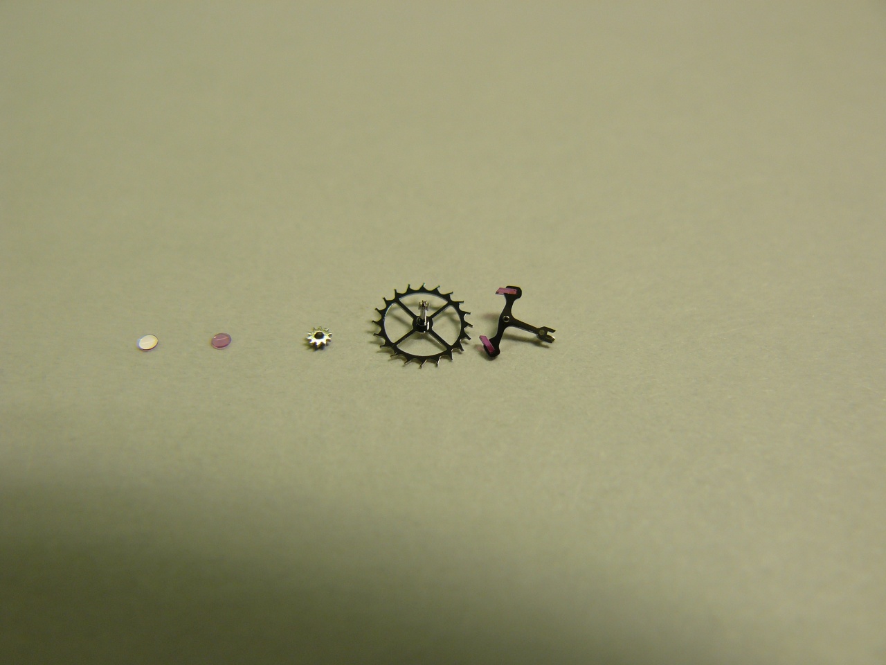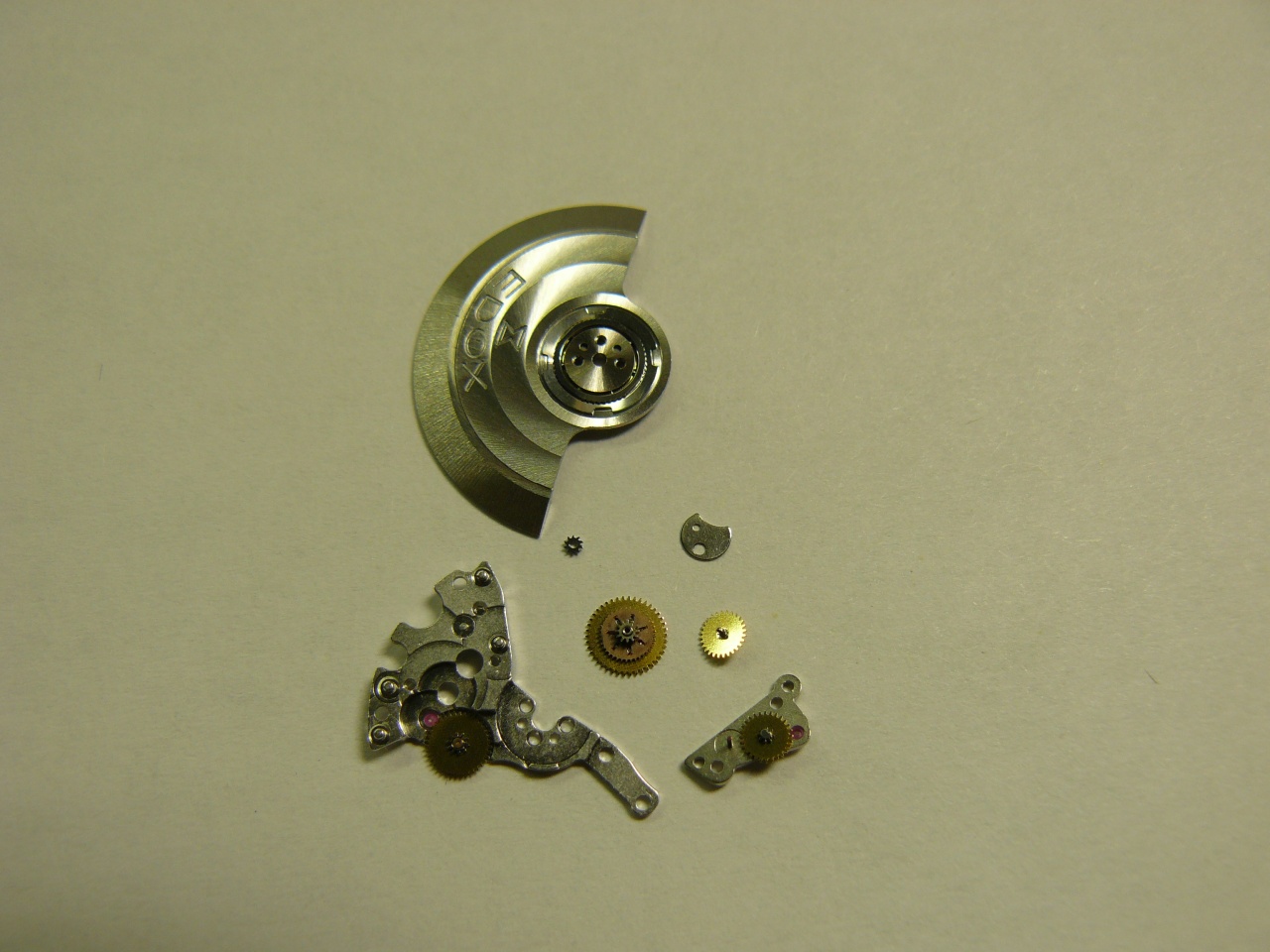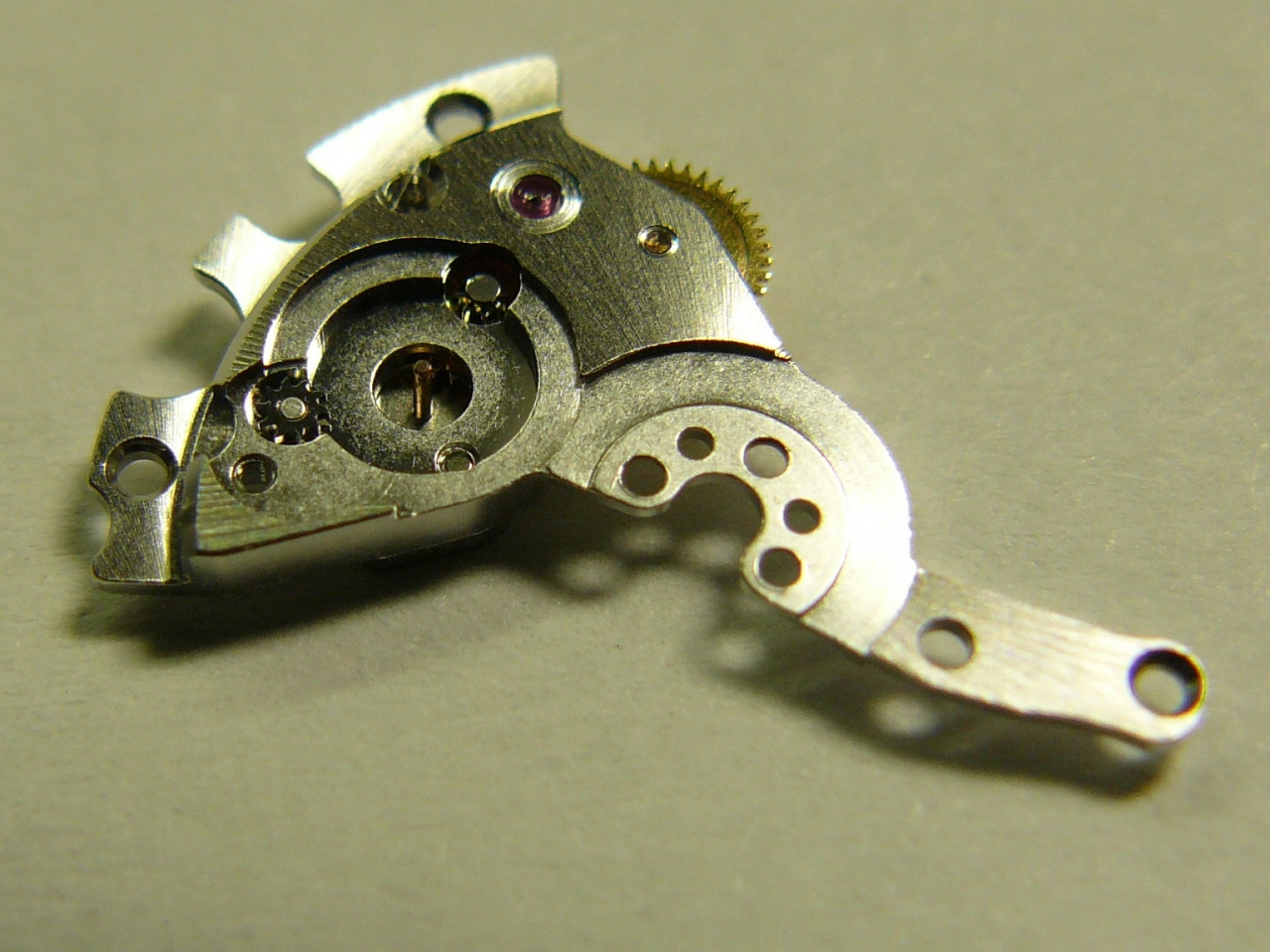 крошечный баланс ЕТА 2000, видны три пропила в ободе для балансировки