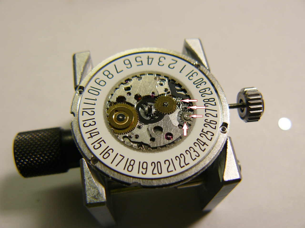 устанавливаем барабанный мост на платину и смазываем еще несколько точек